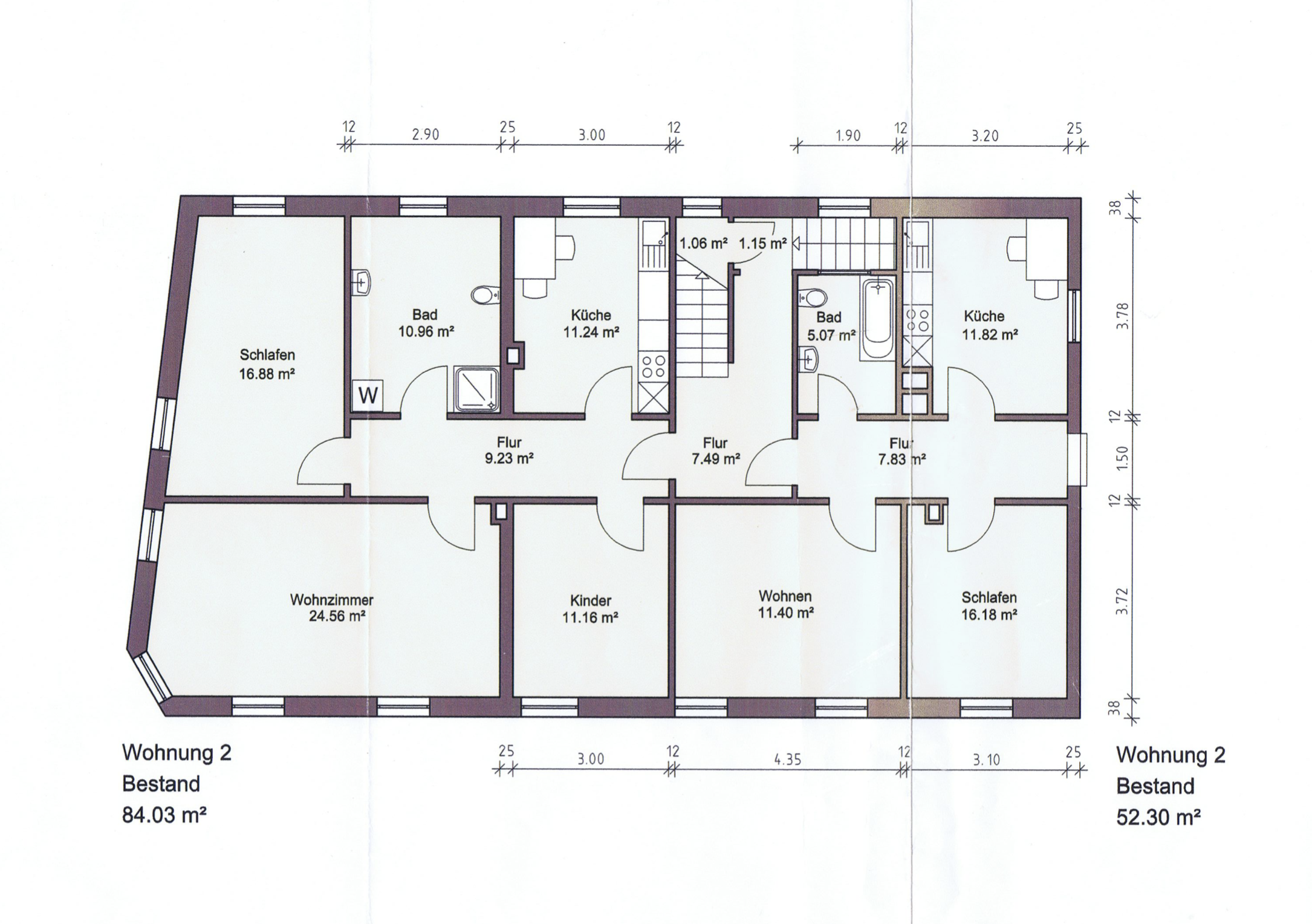 Im 1. Obergeschoss liegen zwei Wohnungen mit ca. 52m² und ca. 85m², im Dachgeschoss eine weitere Wohnung mit ca. 75 m². Die Mieterstruktur ist stabil (u. a. Mietverhältnisse seit 2001, 2015, 2021 und 2022), was die gute Vermietbarkeit und die gewachsene Wohnlage unterstreicht.