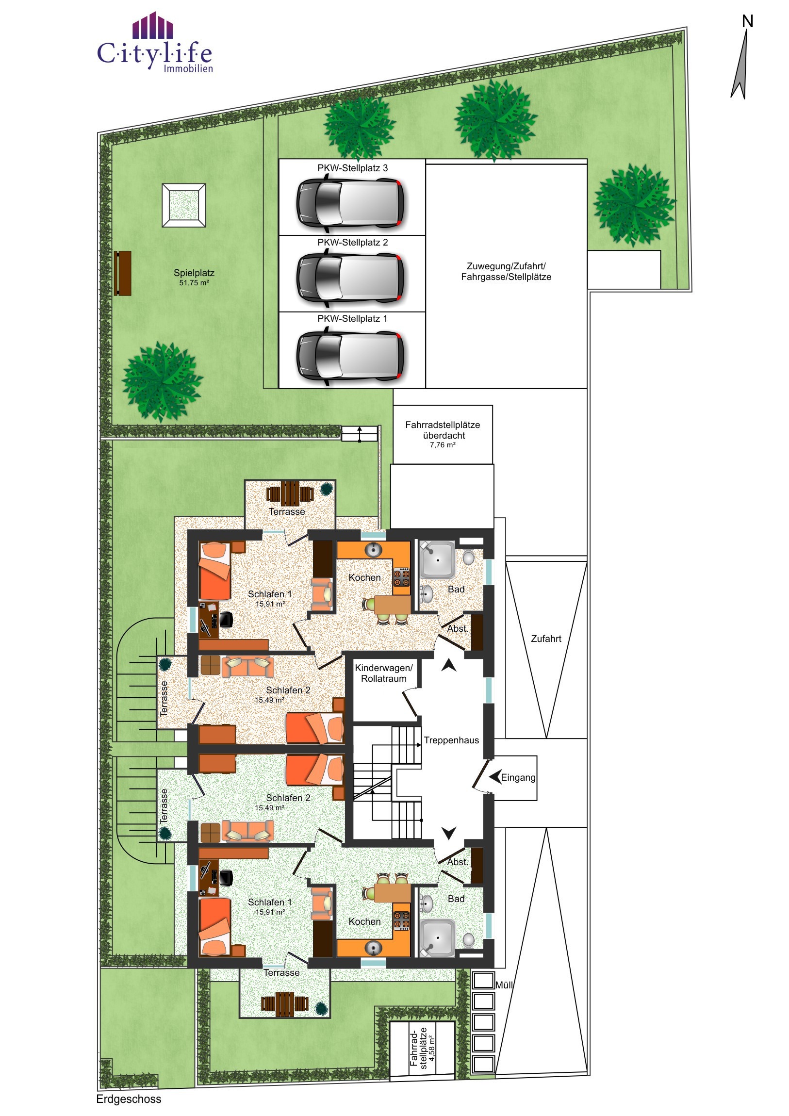 – 3 PKW-Stellplätze am Objekt
