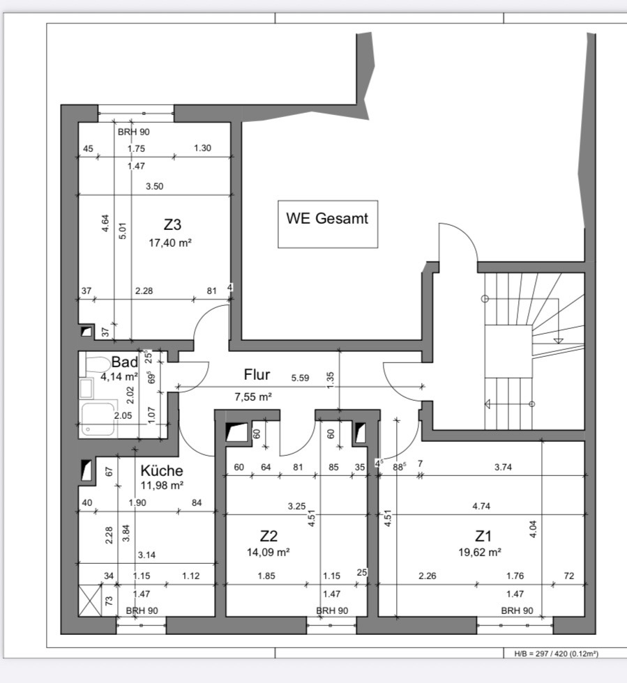 Die Wohnung ist aktuell an einer 3er WG vermietet für 1.040€ KM pro Monat.