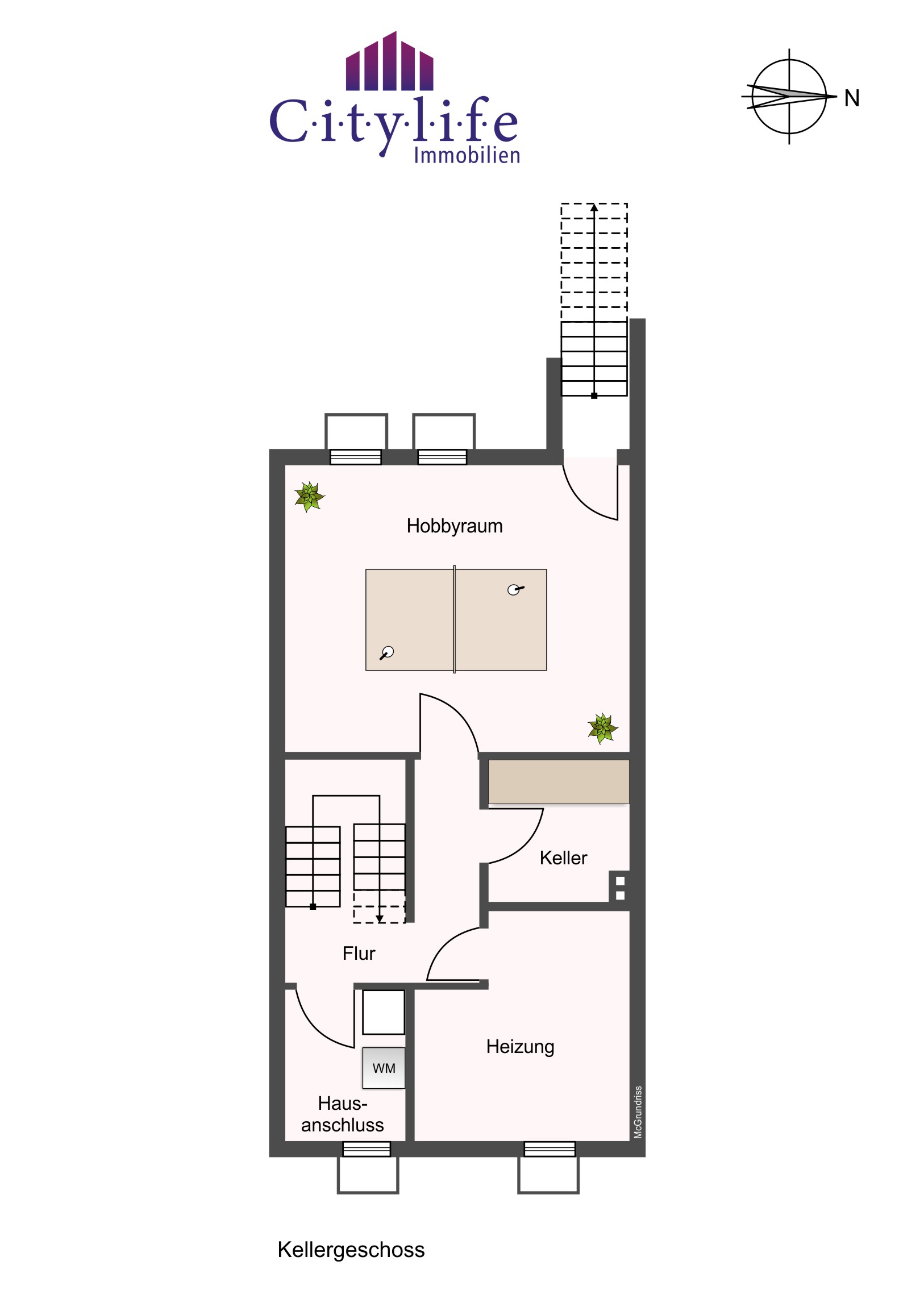Unten im Vollkeller geht es praktisch weiter: Neben klassischen Abstell- und Technikflächen gibt es einen Hobbyraum sowie eine Kelleraußentreppe – super für Gartenwerkzeug, Fahrräder oder den direkten Weg nach draußen. Ergänzend ist eine eigene Garage auf dem Gargenhof vorhanden.